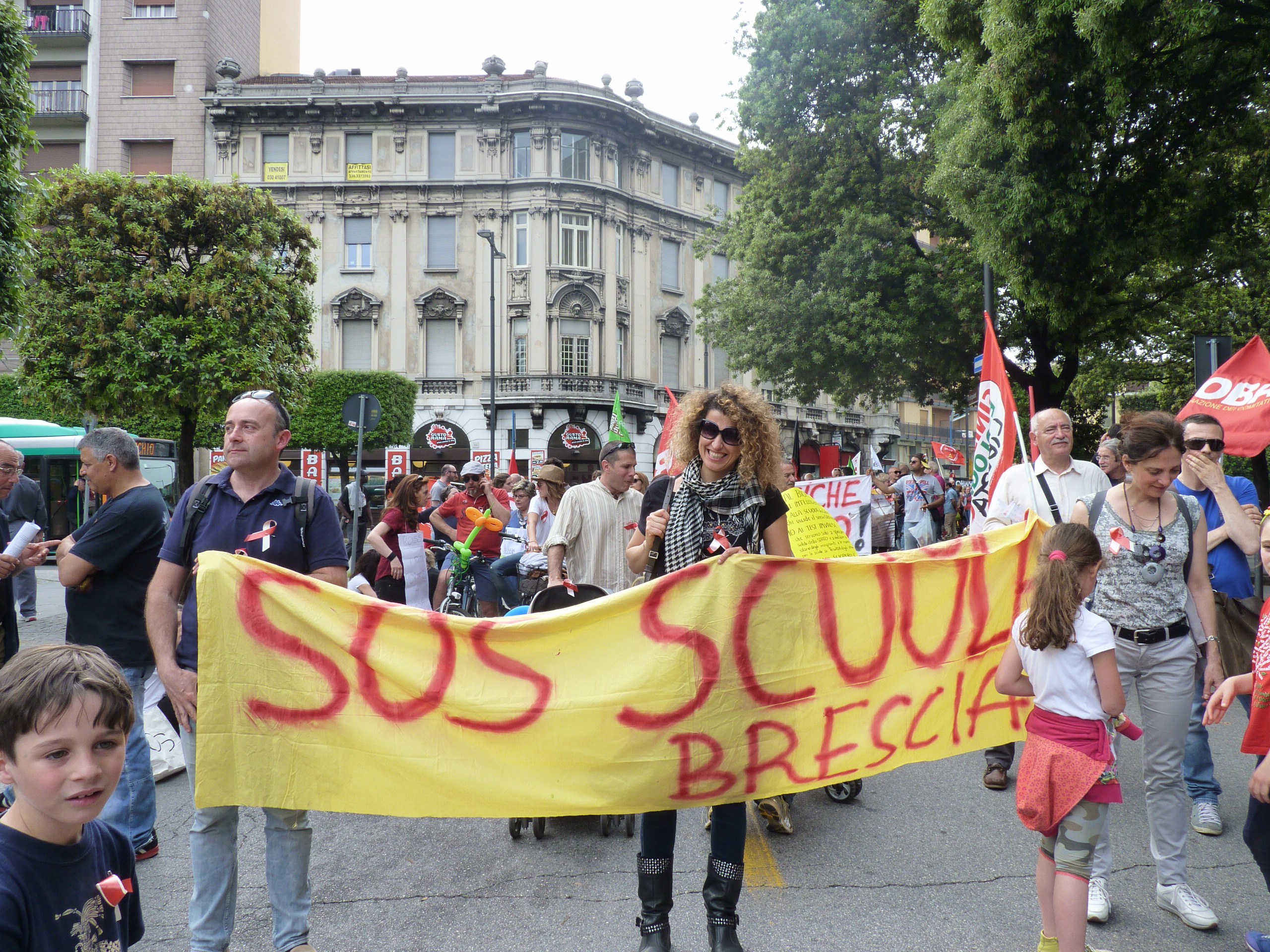 Le scuole Elementare Deledda e Media Calvino si trovano nella zona sud della città di Brescia, zona ormai da 14 anni interessata da un’ordinanza finalizzata all’imposizione di alcuni limiti all’utilizzo del territorio comunale nella zona sud ovest della città e nel sito di interesse nazionale Brescia-Caffaro. In poche parole, dal 2002 i bambini e i ragazzi delle due scuole NON sono mai potuti uscire in giardino durante la ricreazione o nella pausa mensa. Soltanto nel 2006 è stata costruita una piattaforma di cemento, di circa 500mq. dove i bambini delle elementari hanno potuto uscire a “prendere un pò d’aria”, facendo attenzione a non sconfinare nel giardino; 500mq per 260 bambini…….a voi il calcolo dello spazio vivibile di questa situazione. Ora, dopo tante lotte e una falsa partenza, sono iniziati i lavori di bonifica: speriamo proseguano fino al termine.