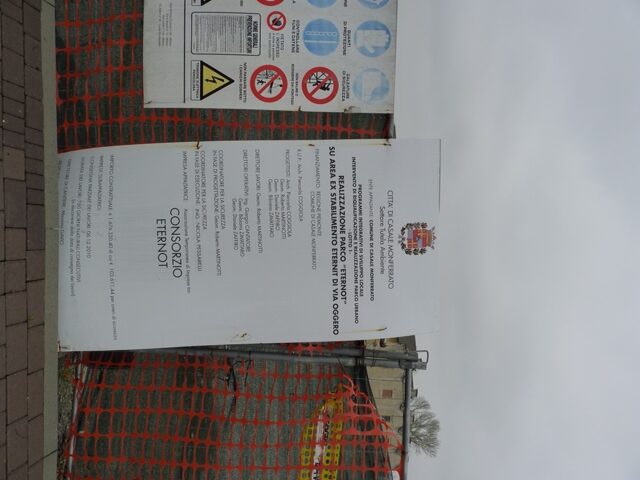 Là dove c’era Eternit, oggi dovrebbe esserci EterNot, un grande parco di 29 mila metri quadrati con un’arena per eventi (come manifestazioni musicali, culturali, lezioni all’aperto delle scolaresche e pattinaggio), un percorso ciclopedonale con pavimentazione ecologica, la sistemazione con panchine nella zona panoramica, un monumento che ricordi le vittime dell’amianto e l’allestimento di un’area giochi per i bambini di oltre 900 metri quadrati.
